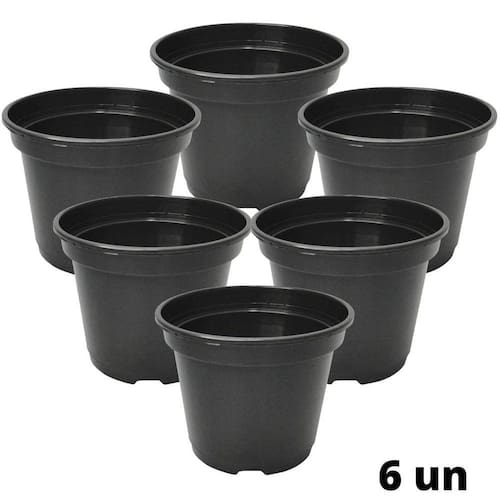 Kit C/6 Vaso Plantio P13 900 Ml Preto Injeplastec