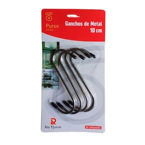 Unidades no Kit: 8 Ganchos Altura: 10 cm Comprimento: 4 cm Largura: 0,3 cm Material: Metal e plástico Tipo: Em forma de S e as bordas com acabamento em plástico preto