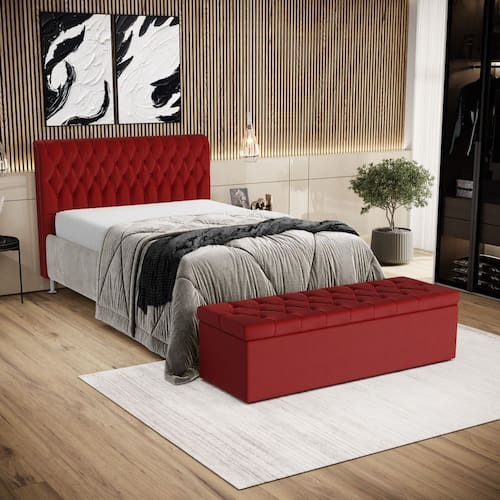 O Kit Bellatrix junto com a Calçadeira Sagitarius foi inspirada para você, que busca um alto estilo, design e um ótimo custo benefício. Ela possui detalhes em capitonê e um ótimo acabamento, junto com a calçadeira que possui um design único que dão um toque de sofisticação .O produto possui dois pés de 12 cm e 2 frames para a sustentação do box, não sendo necessário furar a sua cama, apenas encaixa-la nos suportes da cabeceira. Adquira já!