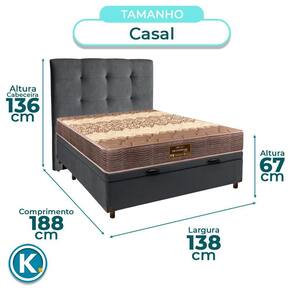 Suporta até 120kg, ideal para uso frequente com firmeza equilibrada Base baú casal com 42cm de altura e amplo espaço interno para organização