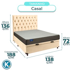 Conjunto Casal Colchão Orthotech + Cama Box BauColchão Casal com 30cm de altura, oferecendo conforto elevado e estrutura reforçadaRevestimento em malha e poliéster, unindo maciez, beleza e durabilidadeSuporta até 130kg, ideal para quem busca firmeza e suporte equilibradoBase baú casal com 42cm de altura e amplo espaço interno para organizaçãoRevestimento em Veludo , fácil de limpar e com visual modernoEstrutura reforçada com capacidade para até 150KgFicha Técnica Colchão:Modelo: OrthotechMarca: InducolTamanho: CasalTecido: Malha/PoliésterLargura: 138cmComprimento: 188cmAltura: 30cmSuporte de Peso: 130KgGarantia: 3 MesesFicha Técnica Cama Box Bau:Modelo: EliteMarca: NatureTamanho: CasalTecido: VeludoLargura: 138cmComprimento: 188cmAltura: 35cmAltura dos Pés: 7cmMaterial dos Pés: MadeiraSuporte de Peso: 150KgPeso: 35KgGarantia: 3 MesesAtenção:Antes da compra certifique-se de que o produto passa por elevadores, portas e corredores.As transportadoras não realizam entregas por escadas ou içamentos.Caso o item não caiba no elevador, a entrega será considerada concluída no térreo do prédio.A cor e tonalidade do produto pode variar de acordo com o dispositivo que o usuário está acessando.