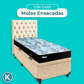 Kit Cabeceira + Cama Box Bau + Colchão Solteiro Molas Ensacadas Life Gold Paropas Conjunto Solteiro Colchão Life Gold + Cama Box Bau Colchão solteiro com 25cm de altura, ideal para conforto diário com excelente estrutura