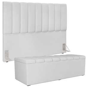 Kit Cabeceira Cama Box Casal King 195cm Com Calçadeira Baú Dália W01 Facto Branco - Lyam