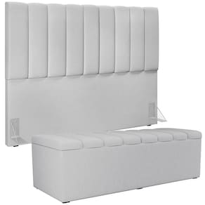 Ter móveis com personalidade, compactos, confortáveis e que agreguem valor em sua decoração é um desejo nem sempre tão fácil de ser alcançado, ainda mais se pensarmos que eles precisam harmonizar bem com o restante da sua mobília. O Kit Cabeceira Cama Box Casal 195cm Com Calçadeira Recamier Baú Dália preenche esses requisitos amplamente, superando todas as suas expectativas! Uma combinação com muita graça e comodidade. Sua calçadeira possui generoso espaço interno, que te auxiliará na acomodação de calçados, cobertores e/ou outros pertences, além de ser muito útil para que você possa calçar seus sapatos com maior agilidade, além de garantir um assento adicional no cômodo, o apoio perfeito para seu quarto.Como se não bastasse toda sua beleza, ainda contrastam muito bem com o ambiente e contam com revestimento de máxima qualidade, cabe mencionar também a estrutura em madeira, bastante firme e resistente, permitindo maior vida útil aos produtos. Você merece descansar em um lugar agradável, não perca esta oportunidade aconchegante e imperdível!Dimensões da Cabeceira (L x A x P)195 x 120 x 8 cm Altura do chão à base: 55 cm Dimensões do suporte Frame (L x A x P)5,5 x 13,5 x 16,5 cm Dimensões da Calçadeira (L x A x P)195 x 50 x 48 cm Medidas Internas:Altura sem a tampa: 45 cmAltura somente da tampa: 04,5 cmLargura: 126 cmProfundidade: 42 cm Características:Estrutura em madeira reflorestada.Revestimento em Linho na cor Cinza.Densidade da Espuma D-18.Dobradiças de ferro banhadas em zinco, na cor preto.Possui sapatas plásticas.Acompanha todos os acessórios para fixação.Acompanha suporte frame produzido em chapa de ferro com acabamento em esmalte PU na cor alumínio.Peso suportado: até 100kg distribuídos. - Por se tratar de estofado as medidas podem ter uma pequena variação de até 3 cm.- A tonalidade do produto real poderá ter ligeira variação devido o lote de tecidos. Observações importantes:- Produto para uso residencial em ambiente interno, não devendo ficar exposto diretamente ao sol, calor e umidade excessivos.- As imagens são meramente ilustrativas, não acompanham objetos de decoração e eletrônicos.- Ao receber a mercadoria, o cliente deve verificar as condições da embalagem, caso haja alguma não assine o comprovante de recebimento.- Montagem, desmontagem e outras instalações serão de responsabilidade do cliente. Não nos responsabilizamos, no ato da , por subir escadas/elevadores ou pelo transporte por guincho em apartamentos. Eventuais despesas são de responsabilidade do comprador.- Confira as dimensões do produto e certifique-se de que passará normalmente por supostos elevadores, portas, escadas e/ou corredores de sua residência. Color: Cinza | ColorFamily: Cinza | ColorSimple: Cinza | ColorSupplier: Cinza | Material: Madeira | MaterialFamily: Madeira | Model: Dália | OriginCountry: Nacional | OriginState: PR | ProductContents: 01 Cabeceira e 01 Calçadeira | ProductHeight: 120 cm | ProductInstructions: Produto para uso em ambiente interno, nao devendo ficar exposto ao sol, calor e umidade excessivos. | ProductLength: 48 cm | ProductWarranty: 90 dias após o recebimento do produto | ProductWeight: 30 kg | ProductWidth: 195 cm | SizeDescription: Cabeceira: Altura 120 cm x Largura 195 cm x Profundidade 8 cm Calçadeira: Altura 50 cm x Largura 195 | SupplierSimpleName: Kit Cabeceira Cama Box Casal King 195cm com Calçadeira Baú Dália W01 Linho Cinza - Lyam