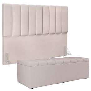 Kit Cabeceira Cama Box Casal King 195cm Com Calçadeira Baú Dália W01 Linho Cru - Lyam