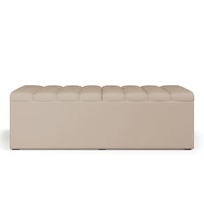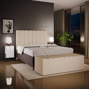 Kit Cabeceira Cama Box Casal King 195cm Com Calçadeira Baú Dália W01 Suede Bege - Lyam