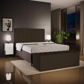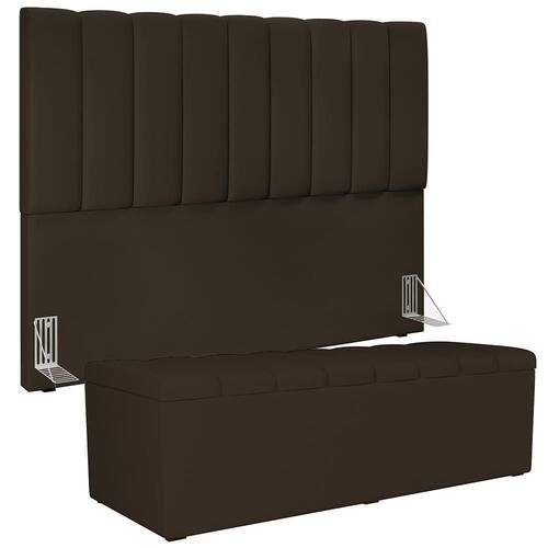 Kit Cabeceira Cama Box Casal King 195cm Com Calçadeira Baú Dália W01 Suede Marrom - Lyam