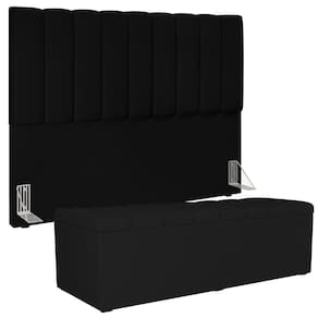 Kit Cabeceira Cama Box Casal King 195cm Com Calçadeira Baú Dália W01 Suede Preto - Lyam