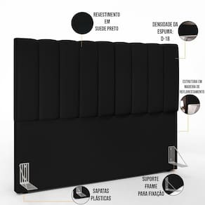 Ter móveis com personalidade, compactos, confortáveis e que agreguem valor em sua decoração é um desejo nem sempre tão fácil de ser alcançado, ainda mais se pensarmos que eles precisam harmonizar bem com o restante da sua mobília. O Kit Cabeceira Cama Box Casal 195cm Com Calçadeira Recamier Baú Dália preenche esses requisitos amplamente, superando todas as suas expectativas! Uma combinação com muita graça e comodidade. Sua calçadeira possui generoso espaço interno, que te auxiliará na acomodação de calçados, cobertores e/ou outros pertences, além de ser muito útil para que você possa calçar seus sapatos com maior agilidade, além de garantir um assento adicional no cômodo, o apoio perfeito para seu quarto.Como se não bastasse toda sua beleza, ainda contrastam muito bem com o ambiente e contam com revestimento de máxima qualidade, cabe mencionar também a estrutura em madeira, bastante firme e resistente, permitindo maior vida útil aos produtos. Você merece descansar em um lugar agradável, não perca esta oportunidade aconchegante e imperdível!Dimensões da Cabeceira (L x A x P)195 x 120 x 8 cm Altura do chão à base: 55 cm Dimensões do suporte Frame (L x A x P)5,5 x 13,5 x 16,5 cm Dimensões da Calçadeira (L x A x P)195 x 50 x 48 cm Medidas Internas:Altura sem a tampa: 45 cmAltura somente da tampa: 04,5 cmLargura: 126 cmProfundidade: 42 cm Características:Estrutura em madeira reflorestada.Revestimento em Suede na cor Preto.Densidade da Espuma D-18.Dobradiças de ferro banhadas em zinco, na cor preto.Possui sapatas plásticas.Acompanha todos os acessórios para fixação.Acompanha suporte frame produzido em chapa de ferro com acabamento em esmalte PU na cor alumínio.Peso suportado: até 100kg distribuídos. - Por se tratar de estofado as medidas podem ter uma pequena variação de até 3 cm.- A tonalidade do produto real poderá ter ligeira variação devido o lote de tecidos. Observações importantes:- Produto para uso residencial em ambiente interno, não devendo ficar exposto diretamente ao sol, calor e umidade excessivos.- As imagens são meramente ilustrativas, não acompanham objetos de decoração e eletrônicos.- Ao receber a mercadoria, o cliente deve verificar as condições da embalagem, caso haja alguma não assine o comprovante de recebimento.- Montagem, desmontagem e outras instalações serão de responsabilidade do cliente. Não nos responsabilizamos, no ato da , por subir escadas/elevadores ou pelo transporte por guincho em apartamentos. Eventuais despesas são de responsabilidade do comprador.- Confira as dimensões do produto e certifique-se de que passará normalmente por supostos elevadores, portas, escadas e/ou corredores de sua residência. Color: Preto | ColorFamily: Preto | ColorSimple: Preto | ColorSupplier: Preto | Material: Madeira | MaterialFamily: Madeira | Model: Dália | OriginCountry: Nacional | OriginState: PR | ProductContents: 01 Cabeceira e 01 Calçadeira | ProductHeight: 120 cm | ProductInstructions: Produto para uso em ambiente interno, nao devendo ficar exposto ao sol, calor e umidade excessivos. | ProductLength: 48 cm | ProductWarranty: 90 dias após o recebimento do produto | ProductWeight: 30 kg | ProductWidth: 195 cm | SizeDescription: Cabeceira: Altura 120 cm x Largura 195 cm x Profundidade 8 cm Calçadeira: Altura 50 cm x Largura 195 | SupplierSimpleName: Kit Cabeceira Cama Box Casal King 195cm com Calçadeira Baú Dália W01 Suede Preto - Lyam