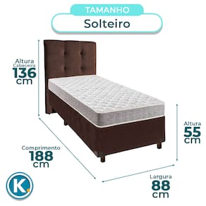 Conjunto Solteiro Colchão D33 + Cama BoxColchão Casal com 17cm de altura, ideal para conforto no dia a diaRevestimento em poliéster com toque suave e boa durabilidadeEspuma D33 firme, que oferece ótimo suporte para coluna e posturaBase box solteiro ideal para otimizar o espaço do quarto com praticidadeRevestimento em Veludo: fácil de limpar e com visual modernoEstrutura firme e resistente com suporte para até 150kgFicha Técnica Colchão:Modelo: D33Marca: InducolTamanho: SolteiroTecido: PoliésterLargura: 88cmComprimento: 188cmAltura: 17cmSuporte de Peso: 100KgGarantia: 3 MesesFicha Técnica Cama Box:Modelo: UniversalMarca: NatureTamanho: SolteiroTecido: VeludoLargura: 88cmComprimento: 188cmAltura: 25cmAltura dos Pés: 13cmMaterial dos Pés: MadeiraSuporte de Peso: 150KgPeso: 18KgGarantia: 3 MesesAtenção:Antes da compra certifique-se de que o produto passa por elevadores, portas e corredores.As transportadoras não realizam entregas por escadas ou içamentos.Caso o item não caiba no elevador, a entrega será considerada concluída no térreo do prédio.A cor e tonalidade do produto pode variar de acordo com o dispositivo que o usuário está acessando.
