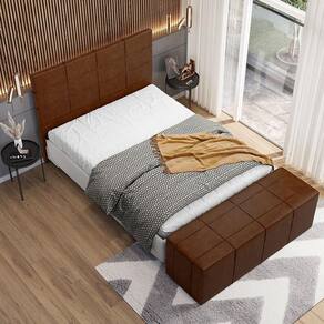 Kit Cabeceira Cama Box Queen 160cm Com Calçadeira Roma W01 Couríssimo Marrom - Lyam