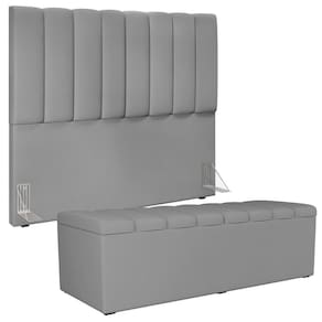 Kit Cabeceira Cama Box Casal 140cm Com Calçadeira Recamier Baú Dália W01 Facto Cinza - Lyam Decor