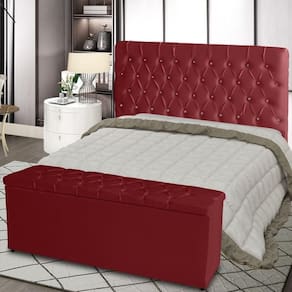 Kit Cabeceira De Cama E Calçadeira Baú Estrela Casal 140 Cm Suede Capitonê Vermelho De Casa Móveis E Decoração