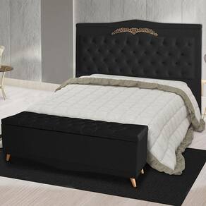 Kit Cabeceira De Cama E Calçadeira Baú Madri King 195 Cm Suede Preto Do Lar Móveis E Decoração