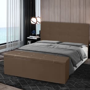 Kit Cabeceira e Calçadeira Baú Casal 1,40m Berlim Suede - Pallazio - Marrom
