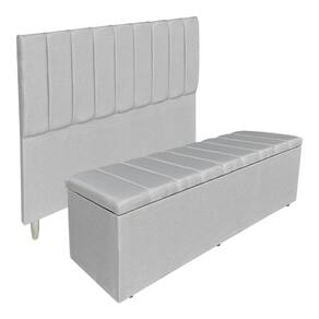 Kit Cabeceira e Calçadeira Baú Casal 1,40m Londres Linho Cinza Dal Poz Estofados