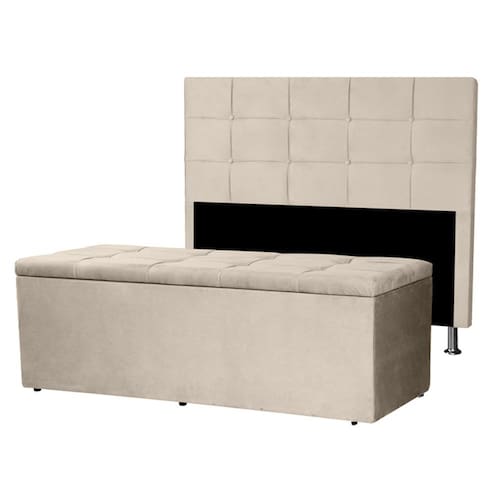 Kit Cabeceira e Calçadeira Baú Casal 1,40m Roma Suede Bege - Pallazio