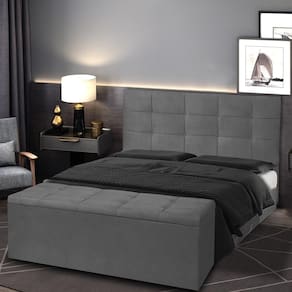 Kit Cabeceira e Calçadeira Baú Casal 1,40m Roma Suede Cinza Dal Poz Estofados