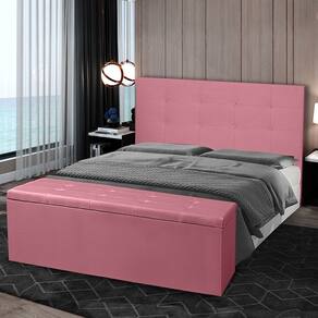 Kit Cabeceira e Calçadeira Baú King 1,95m Berlim Suede - Pallazio - Rosa