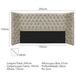 - Largura Total: 245 cm (suporta cama de até 195 cm);