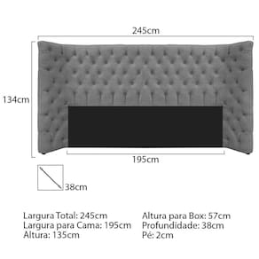 - Largura Total: 245 cm (suporta cama de até 195 cm);