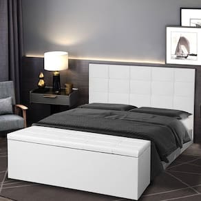 Confeccionados com material de alta qualidade, ambos os itens do kit apresentam acabamento com materias resistentes. A cabeceira serve como um elemento decorativo central, enquanto a calçadeira baú oferece uma solução prática para organizar roupas de cama, travesseiros e outros itens.