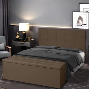 Era o que faltava para o seu quarto! O Kit Cabeceira e Calçadeira báu vão deixar tudo mais bonito e arrumado, uma combinação perfeita de praticidade, conforto e sofisticação!   Medidas Cabeceira: Altura: 120cm Largura: 90cm Profundidade: 7cm   Medidas Calçadeira: Largura: 90cm Altura: 53cm Profundidade: 44cmEspumas D-26   Acompanha: 1 kit fixação, 2 pés e 1 manual;   Madeira: Selecionada de Eucalipto Tecido: Suede   Garantia: 90 dias após o recebimento do produto.   Instruções de Limpeza: Utilizar um pano limpo e seco. Não limpar com escovas ou produtos abrasivos.   Observações importantes: - As imagens são meramente ilustrativas, não acompanham objetos de decoração e eletros; - As cores dos produtos podem sofrer alterações dependendo do seu monitor ou lote do tecido. - Todos os produtos vão embalados com total segurança; - Confira a embalagem e o produto no ato da entrega, caso o produto esteja avariado recuse imediatamente, coloque uma observação no verso da nota. - Não nos responsabilizamos no ato da entrega por montagens, desmontagens, instalações de produtos, nem utilização de guinchos ou equipamentos similares para acesso a pisos superiores em apartamentos. - Confira as dimensões do produto no momento da compra e certifique-se de que passará normalmente por escadas, elevadores, portas e corredores. Observando as orientações acima, evita-se futuros desagrados ou imprevistos com a entrega do produto. A MONTAGEM DO PRODUTO É DE RESPONSABILIDADE DO COMPRADOR, NÃO EFETUAMOS A MONTAGEM DO PRODUTO
