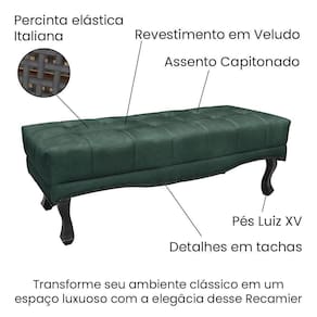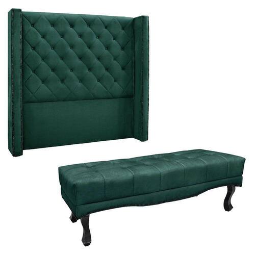 Kit Cabeceira E Calçadeira Recamier Casal 1,40m Vicenza Veludo - Pallazio Cor Verde Floresta