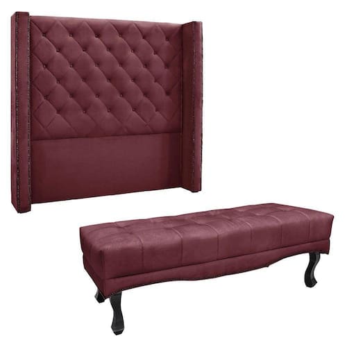 Kit Cabeceira E Calçadeira Recamier King 1,95m Vicenza Veludo Vinho - Pallazio