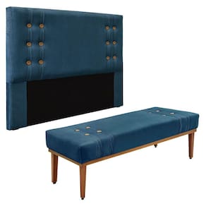 Kit Cabeceira E Calçadeira Recamier King 1,95M Azul Marinho - Azul Doce