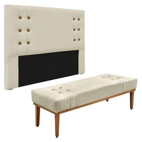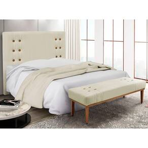 Kit Cabeceira e Calçadeira Recamier Solteiro 0,90m Gênova Veludo - Pallazio - Bege