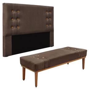 Kit Cabeceira e Calçadeira Recamier Solteiro 0,90m Gênova Veludo - Pallazio - Marrom