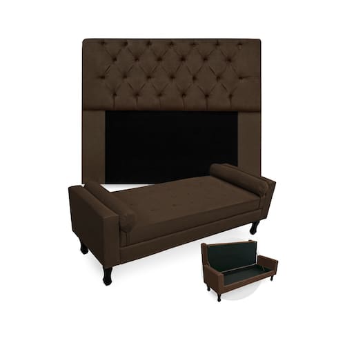 Kit Cabeceira Estofada Mirage E Recamier Baú Fenix Solteiro 90 cm Suede Marrom - LM DECOR
