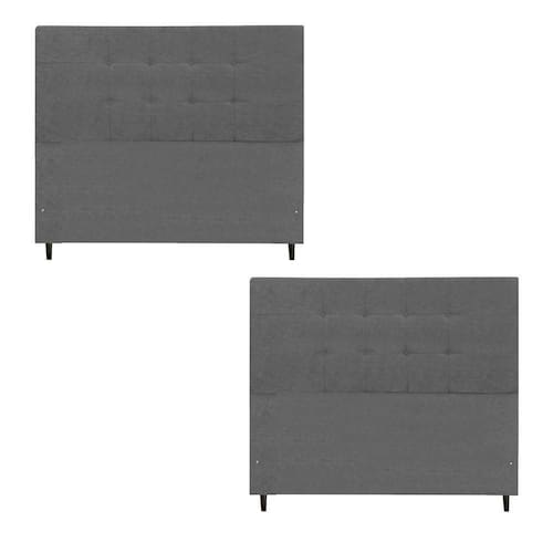 Kit Cabeceira Maveric Estofada Casal 144cm Chumbo Botão Tecido + Cabeceira Maveric Solteiro 94cm Chumbo