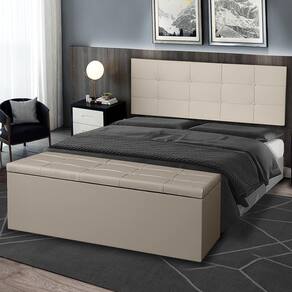 Confeccionados com material de alta qualidade, ambos os itens do kit apresentam acabamento em Material Sintético, proporcionando um toque suave e agradável ao toque, além de serem resistentes e duráveis. A cabeceira painel serve como um elemento decorativo central, enquanto a calçadeira baú oferece uma solução prática para organizar roupas de cama, travesseiros e outros itens.