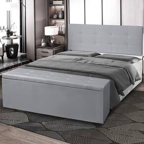 Kit Cabeceira Painel e Calçadeira Baú Casal Queen 1,60m Berlim Material Sintético Cinza Dal Poz Estofados