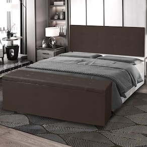 Kit Cabeceira Painel e Calçadeira Baú Solteiro 0,90m Berlim Material Sintético Marrom Dal Poz Estofados