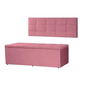 Kit Cabeceira Painel E Calçadeira Baú Solteiro 0,90m Roma Suede Rosa Sky Mobile