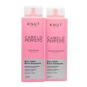 Kit Cabelo Perfeito Knut Completo Desvende o segredo para o cabelo perfeito com nosso incrível Kit Knut Cabelo Perfeito. Nossa fórmula exclusiva combina o poder rejuvenescedor da rosa mosqueta com os benefícios antioxidantes da goji berry, proporcionando uma experiência de cuidado capilar incomparável. Experimente uma revolução no cuidado capilar que vai muito além da limpeza comum. Shampoo: Comece sua jornada para o cabelo perfeito aplicando sobre os cabelos molhados e massageando suavemente para uma limpeza revigorante. Repita o processo, deixando-se envolver pela espuma luxuosa. Deixe agir entre 3 e 5 minutos antes de enxaguar e prepare-se para uma transformação capilar. Condicionador: Continue sua jornada para o cabelo perfeito aplicando generosamente o condicionador sobre os cabelos úmidos, separando mecha a mecha e aplicando fazendo um movimento deslizante com as mãos, de cima para baixo, repetidas vezes até perceber que os fios absorveram o produto. Deixe agir entre 5 e 10 minutos e enxágue abundantemente. Máscara de tratamento :Com os cabelos limpos e úmidos, aplique uma quantidade generosa da Máscara Capilar Cabelo Perfeito, concentrando-se principalmente da altura das orelhas para as pontas, onde os fios estão mais necessitados. Massageie suavemente os fios para garantir uma distribuição uniforme. Utilize um pente de dentes largos para ajudar no desembaraço. Deixe agir por 3 a 5 minutos. Para um tratamento intensivo, deixe agir por 10 a 15 minutos cobrindo os cabelos com uma touca térmica. Enxágue abundantemente com água até a completa remoção do produto. Use de 2 a 3 vezes por semana ou sempre que seus cabelos precisarem de uma dose extra de cuidado. Spray finalizador: Agite bem o frasco antes de usar. Borrife uma quantidade generosa a uma distância de 15 a 20 cm dos fios. Para uso no cabelo úmido: Aplique uniformemente após o banho para facilitar o desembaraço, definir cachos e preparar os fios para o secador ou chapinha. Para uso no cabelo seco: Use para controlar o frizz ao longo do dia, dar brilho instantâneo e revitalizar o penteado. Distribua com os dedos ou um pente de dentes largos para garantir que o produto alcance todos os fios. Pronto Seu cabelo está protegido, hidratado e com aquele brilho que fala por si só. Benefícios Principais: Reconstrução Intensa: Fortalece a fibra capilar da raiz às pontas, preenchendo falhas e devolvendo a força. Hidratação Profunda: Atua na camada mais interna do fio, garantindo hidratação duradoura e prevenindo o ressecamento. Brilho e Suavidade Extraordinários: A combinação de Óleo de Argan e de Karité envolve cada fio em uma película de brilho e maciez, selando as cutículas. Desembaraço Facílimo: A fórmula com agentes condicionantes potentes garante um deslize perfeito, eliminando os nós sem quebrar os fios. Proteção e Nutrição: O extruto de Lycium Barbarum Goji e o Óleo de Rosa Mosqueta oferecem antioxidantes que ajudam a proteger os cabelos dos danos ambientais. Marca: Não Informado