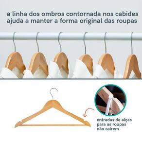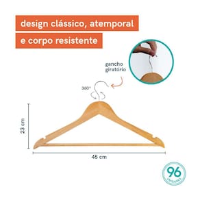 Esses são os cabides de madeira da OIKOS e tem como missão segurar qualquer barra! Com um design clássico e atemporal, são cabides bem resistentes, não marcam o tecido e seu gancho é giratório, sendo uma mão na roda naquele momento que percebemos ter guardado pelo lado errado. Esse modelo é bacana também para quem prefere deixar os modelitos expostos em araras, já que a textura natural da madeira ajuda a compor a decoração. dica: Quer fazer aquela limpa no armário, mas não sabe por onde começar? Descubra as roupas que você realmente usa: é só girar o gancho do cabide pro outro lado a medida que for guardando de volta no armário.