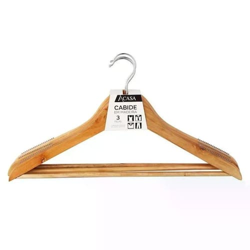 Kit Cabide Madeira Antiderrapante c/3 Peças - A\CASA