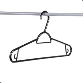 O Cabide Plástico Adulto Pendura Mais Preto 40cm Easy Sanremo 5 Unidades pode ser para todos os tipos de roupa e possui excelente relação custo-benefício. Comportando perfeitamente duas peças, é leve, resistente e durável. Esse cabide Sanremo é ideal para camisetas, casacos leves, blusas e vestidos com alça e suporta até 3,2 kg.