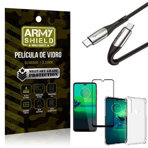 Cabo usb tipo c para usb-c + capinha + película vidro 3d - armyshield