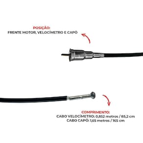 Contém: 1 un - cabo para capo com alavanca Comprimento: 1,65 metros / 165 cm 1 un - cabo do velocimetro Comprimento: 0,852 metros / 85,2 cm