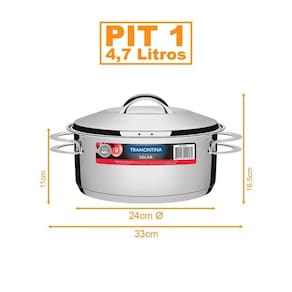 - 01 Caçarola Aço Inox Fundo Triplo Solar 4,7 Litros PIT 1 Tramontina