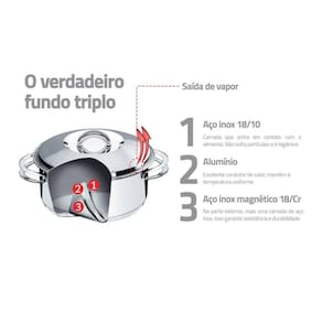 - Fundo: Triplo (aço inox + alumínio + aço inox)
