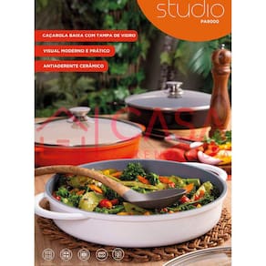 As caçarolas Studio Hercules baixas com tampa de vidro, possui fundo especial para todos os tipos de fogão: halogênio, convencional e indução. Pintura resistente a alta temperatura. Seu corpo e alças em alumínio fundido, fazem com que seja possível utilizar sua caçarola diretamente no forno. Funcional e bonita, é o ideal para quem gosta de praticidade, podendo ir do forno à mesa. Design elegante e moderno.