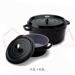 - Capacidade: 4,3 Litros + 6,8 Litros - Tamanho: 4,3 Litros 25,4x11cm + 6,8 Litros 29,5x13cm - Espessura: 4,5mm - Corpo em alumínio fundido - Revestimento antiaderente cerâmico - Pintura resistente a altas temperaturas - Tampa com sistema pinga-gotas - Pode ir ao forno e lava-louças - Fundo especial para todos os tipos de fogão fogão convencional a gás, indução e halogênio - Certificado Inmetro 008119/2019 Ean: 7893242545469