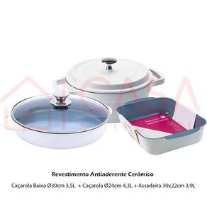Kit Caçarolas Com Assadeira Hercules Antiaderente Ceramico Branca Média PA9000 Descrição: