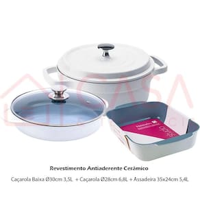 Características da Caçarola Baixa Hercules 30cm 3,5 Litros Branca: